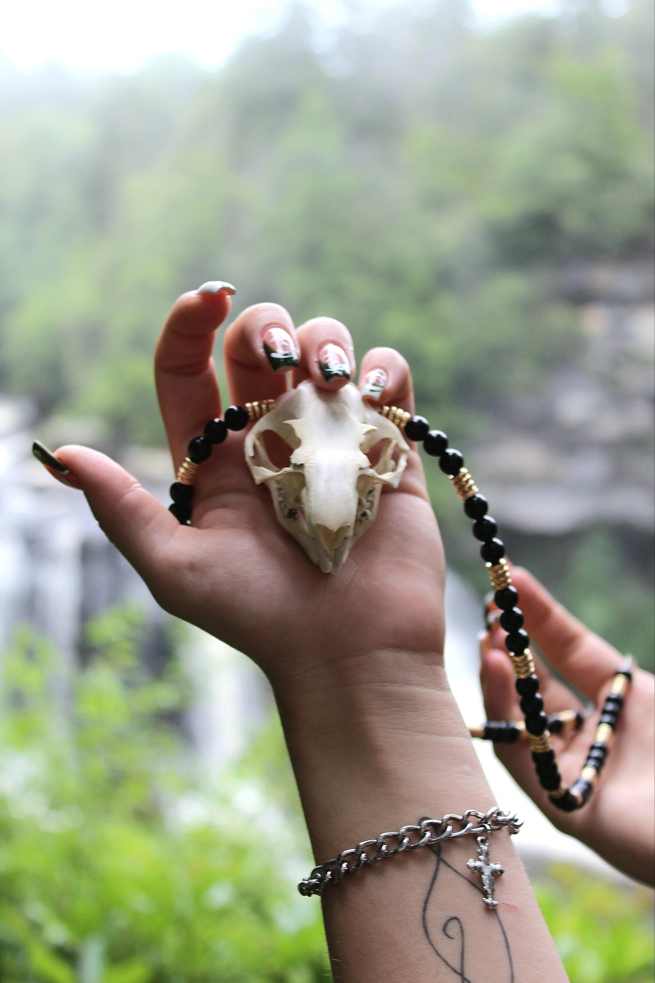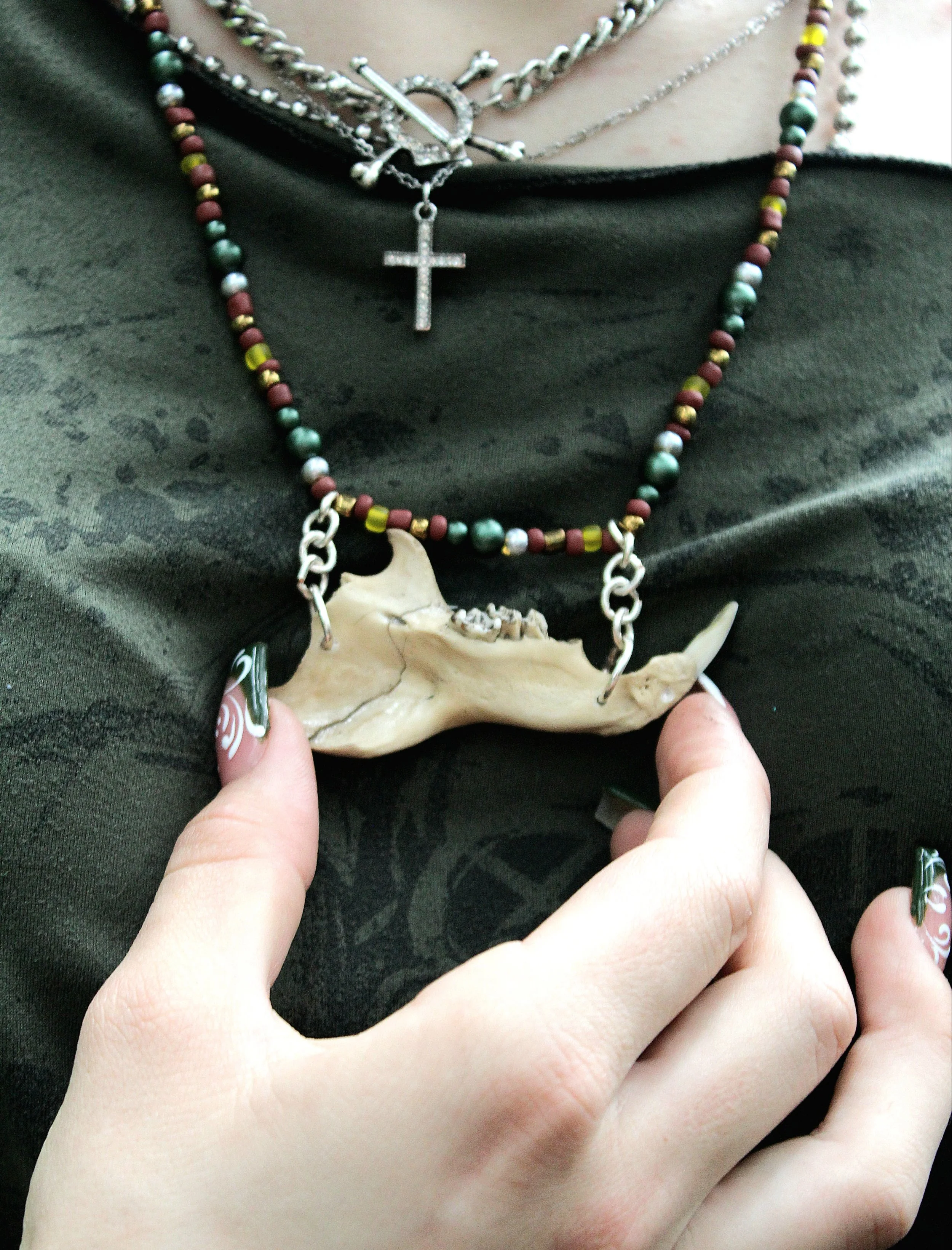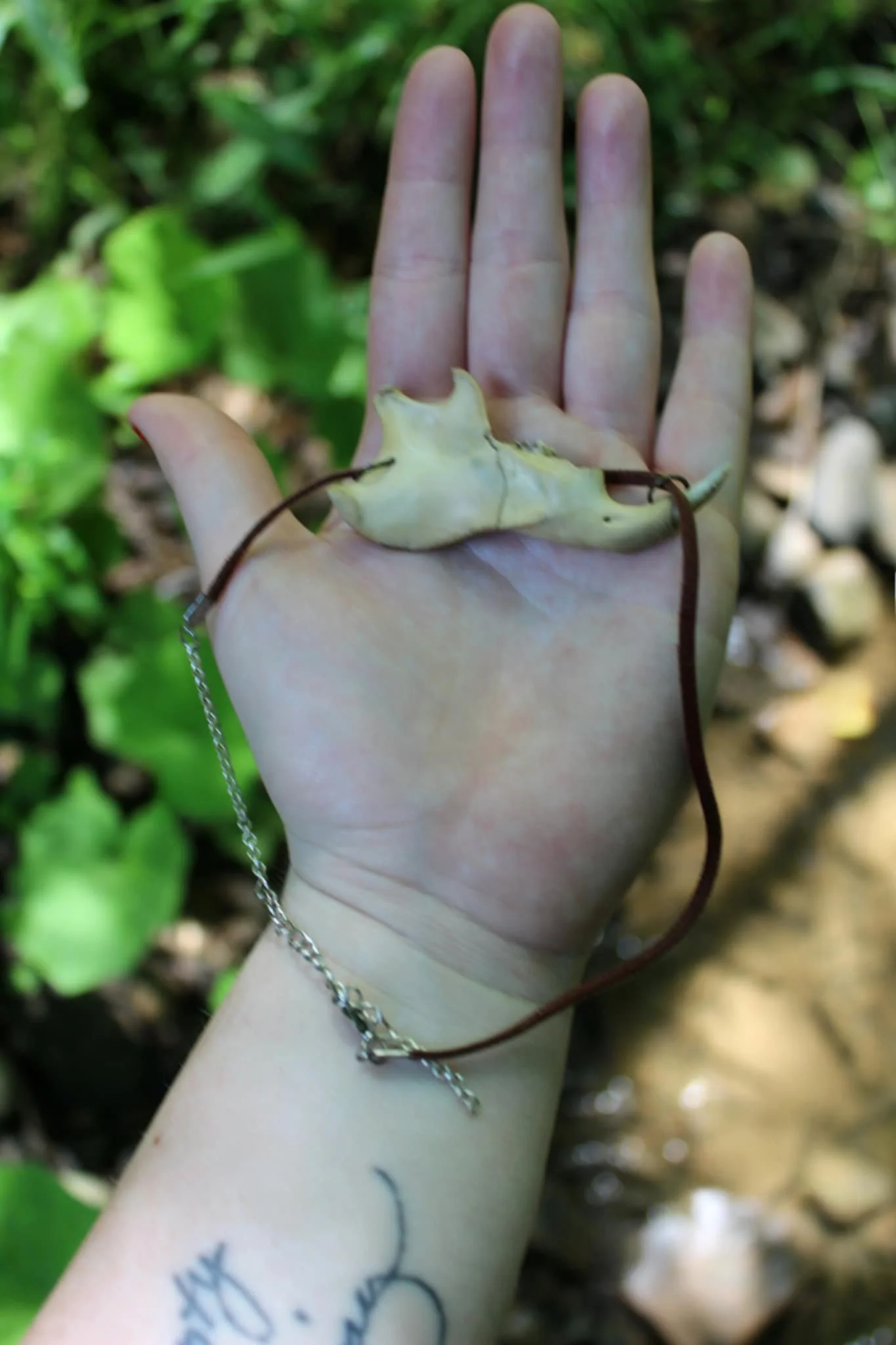 Categories: All Decor Painted Necklaces & Chokers Bracelets Earrings Keychains Poochie Pals Pinned Bugs Rare Finds Sets Jawbone Necklace $75.00 Groundhog Skull Necklace $105.00 Jawbone Choker $45.00 Sold out Opossum Claw Necklace & Earring Set $50.00